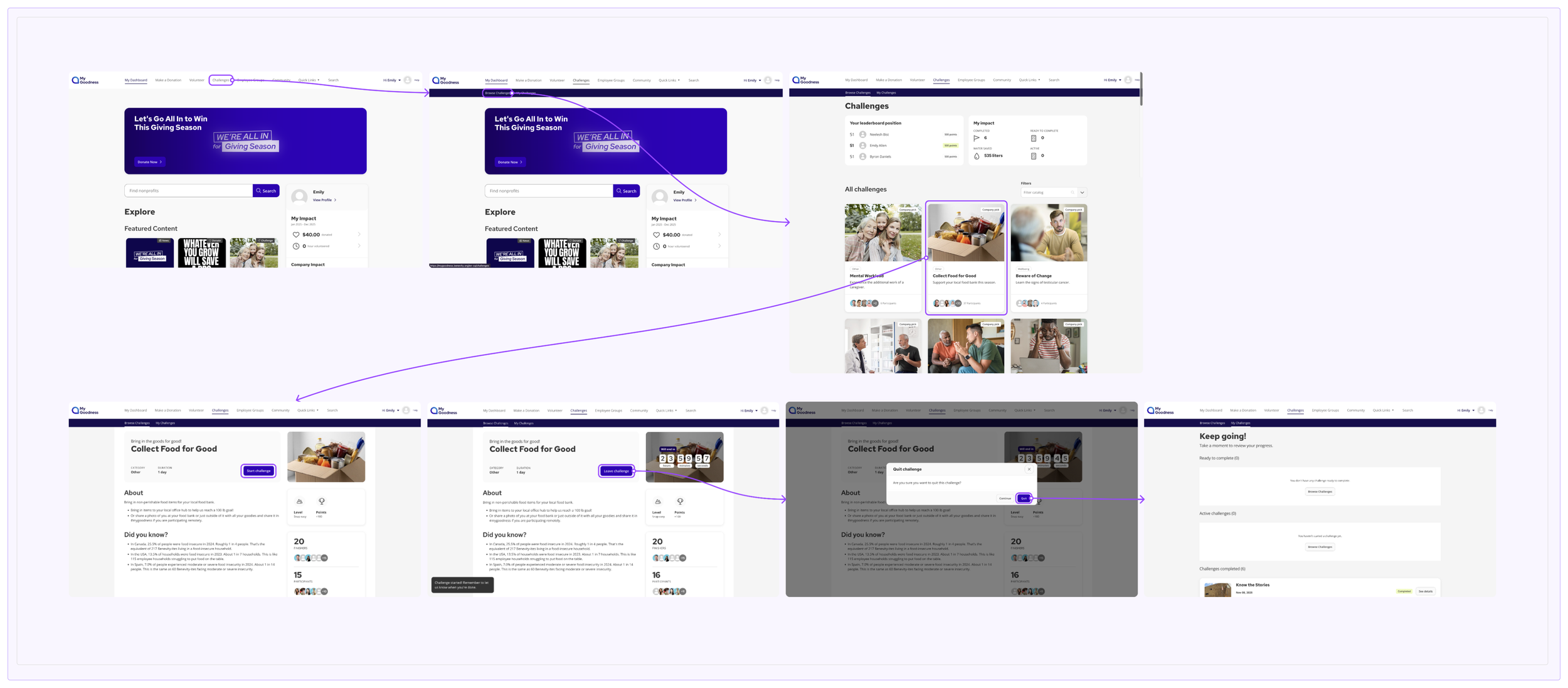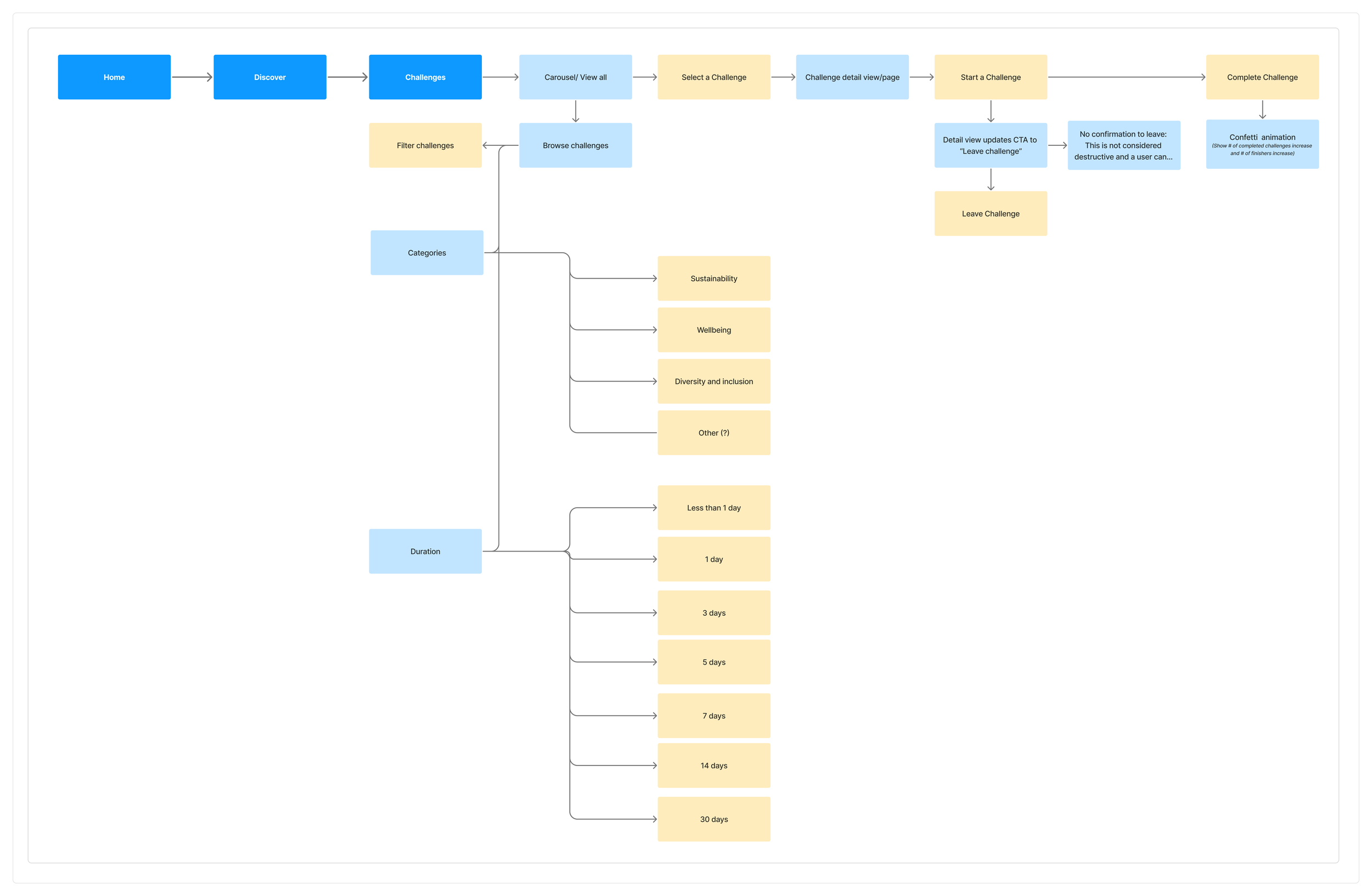 With these patterns in mind, I mapped the end-to-end journey for the mobile challenges experience.