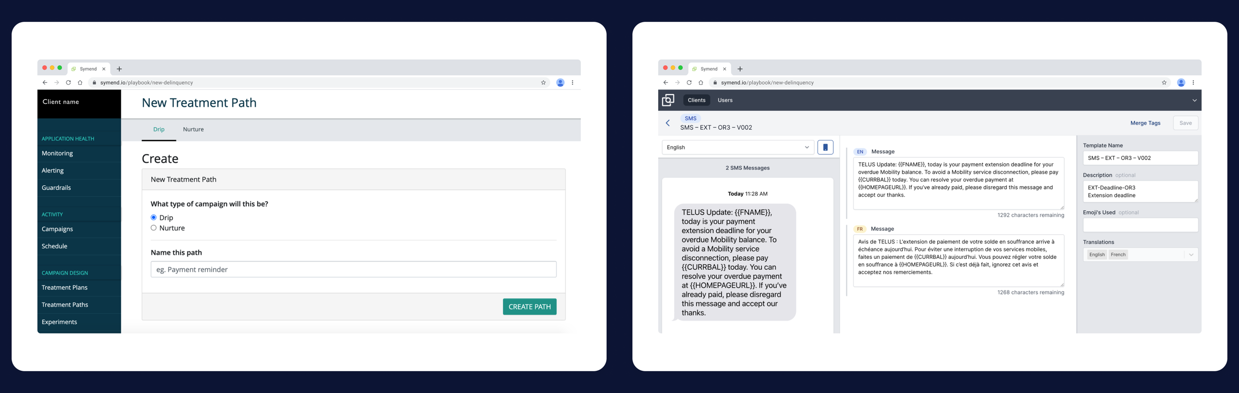 Impact: Playbooks became the unified way Symend clients reach and support 100M+ customers across telco, banking, and utilities.
